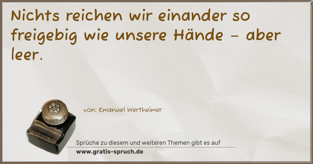 Nichts reichen wir einander so freigebig wie unsere Hände – aber leer.