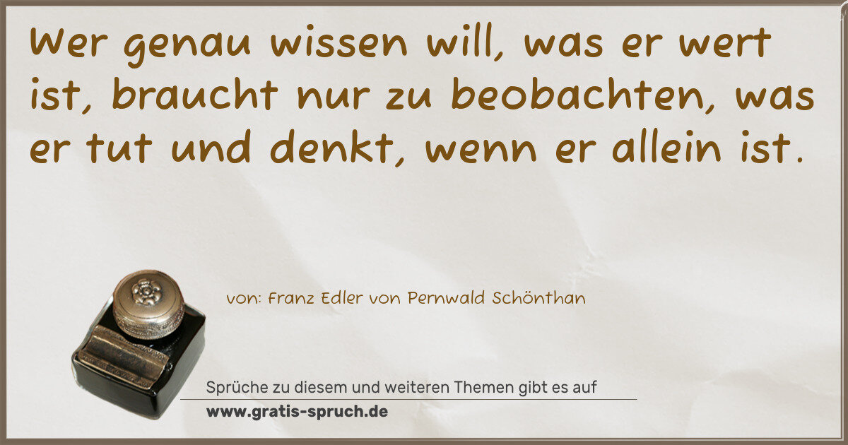 Wer genau wissen will, was er wert ist, braucht nur zu beobachten, was er tut und denkt, wenn er allein ist.