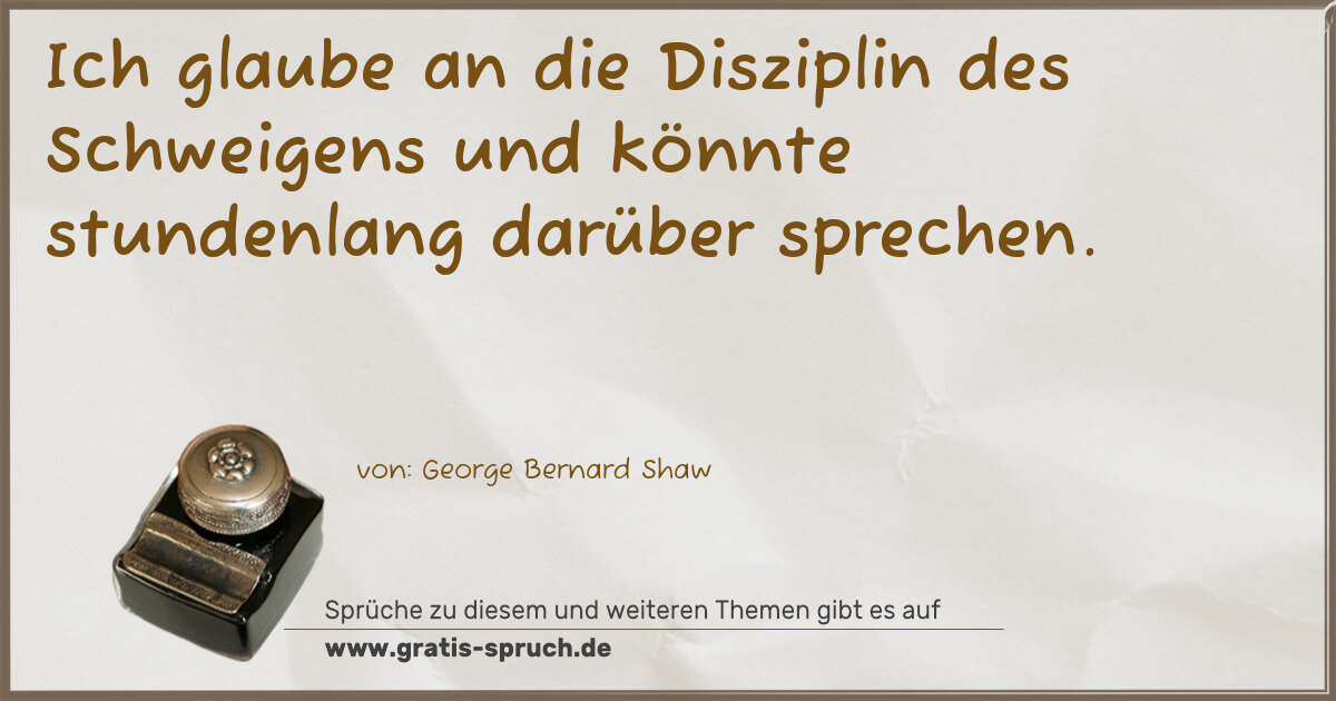 Ich glaube an die Disziplin des Schweigens und könnte stundenlang darüber sprechen.