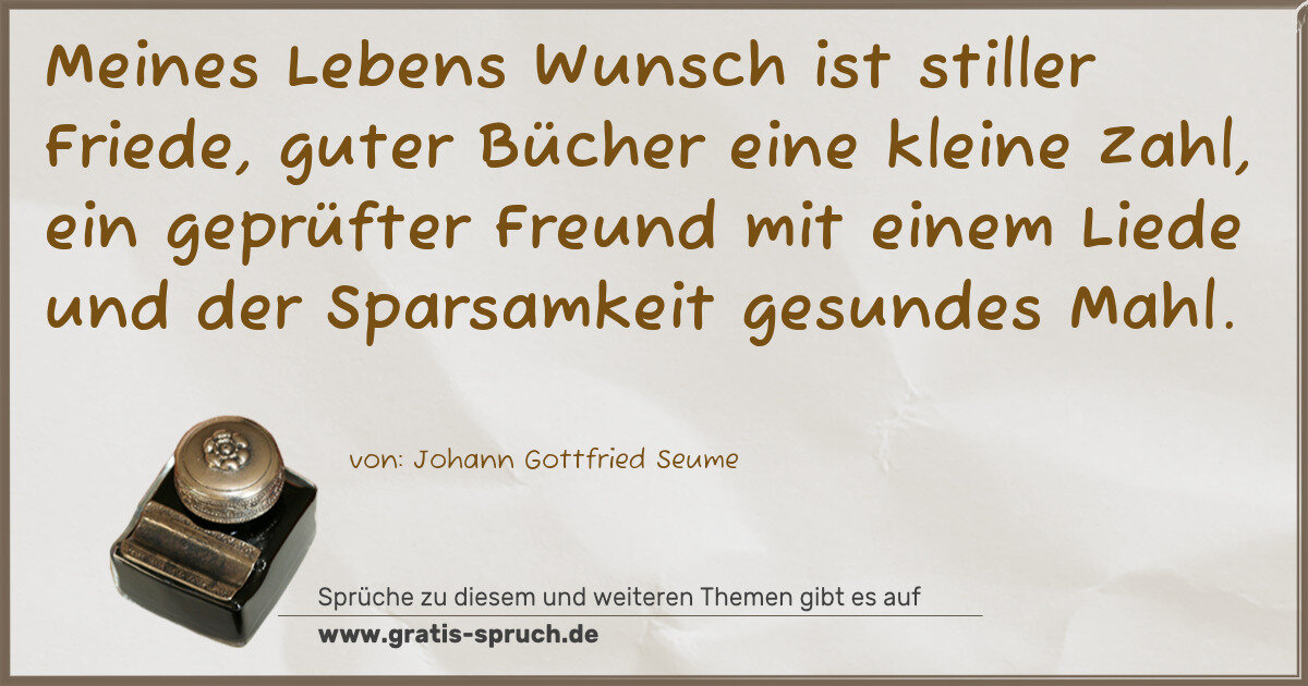 »Meines Lebens Wunsch ist stiller Friede, guter Bücher eine kleine Zahl, ein geprüfter Freund mit einem Liede und der Sparsamkeit gesundes Mahl.