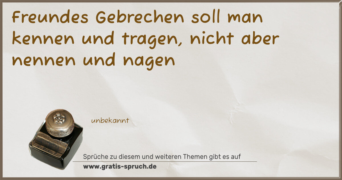 Freundes Gebrechen soll man kennen und tragen, nicht aber nennen und nagen