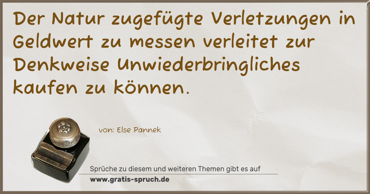 Der Natur zugefügte Verletzungen in Geldwert zu messen verleitet zur Denkweise Unwiederbringliches kaufen zu können.