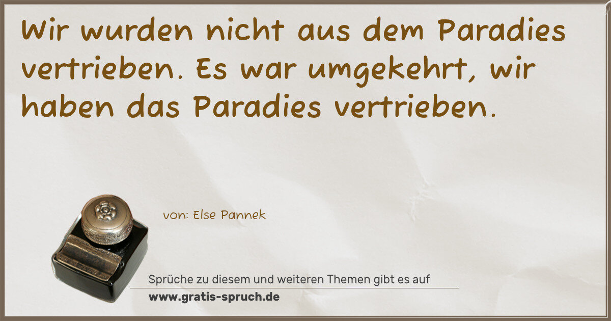 Wir wurden nicht aus dem Paradies vertrieben. Es war umgekehrt, wir haben das Paradies vertrieben.