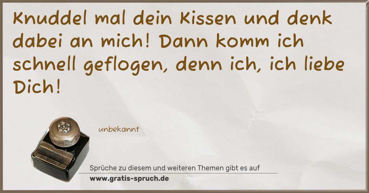 Knuddel mal dein Kissen und denk dabei an mich! Dann komm ich schnell geflogen, denn ich, ich liebe Dich!