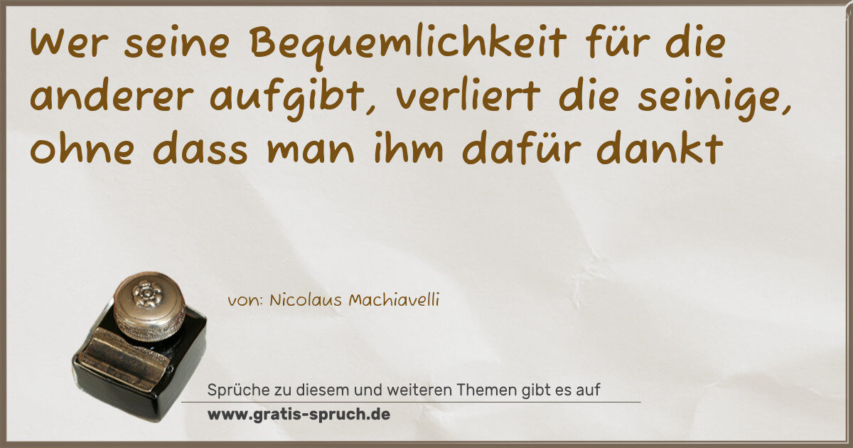 Wer seine Bequemlichkeit für die anderer aufgibt, verliert die seinige, ohne dass man ihm dafür dankt