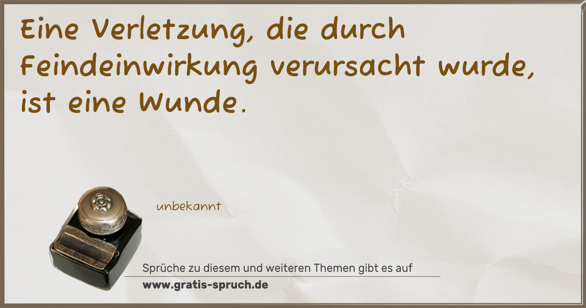 Eine Verletzung, die durch Feindeinwirkung verursacht wurde, ist eine Wunde.
