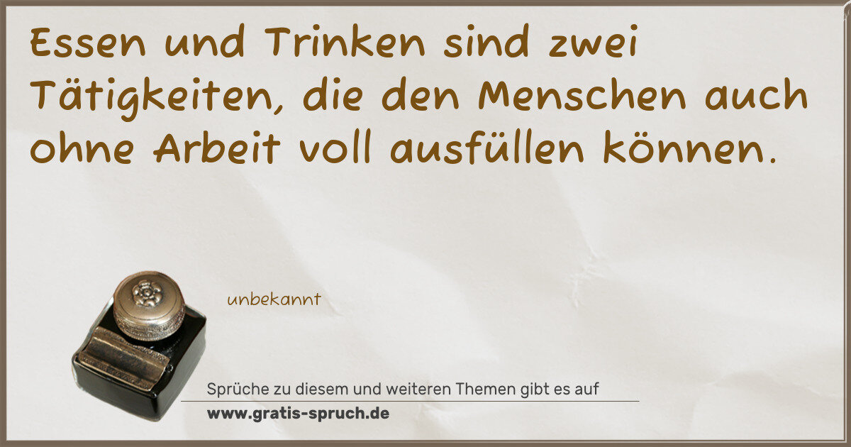Essen und Trinken sind zwei Tätigkeiten, die den Menschen auch ohne Arbeit voll ausfüllen können.
