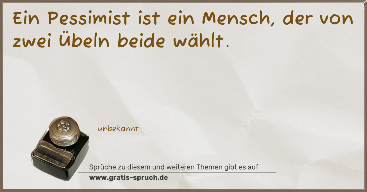 Ein Pessimist ist ein Mensch, der von zwei Übeln beide wählt.