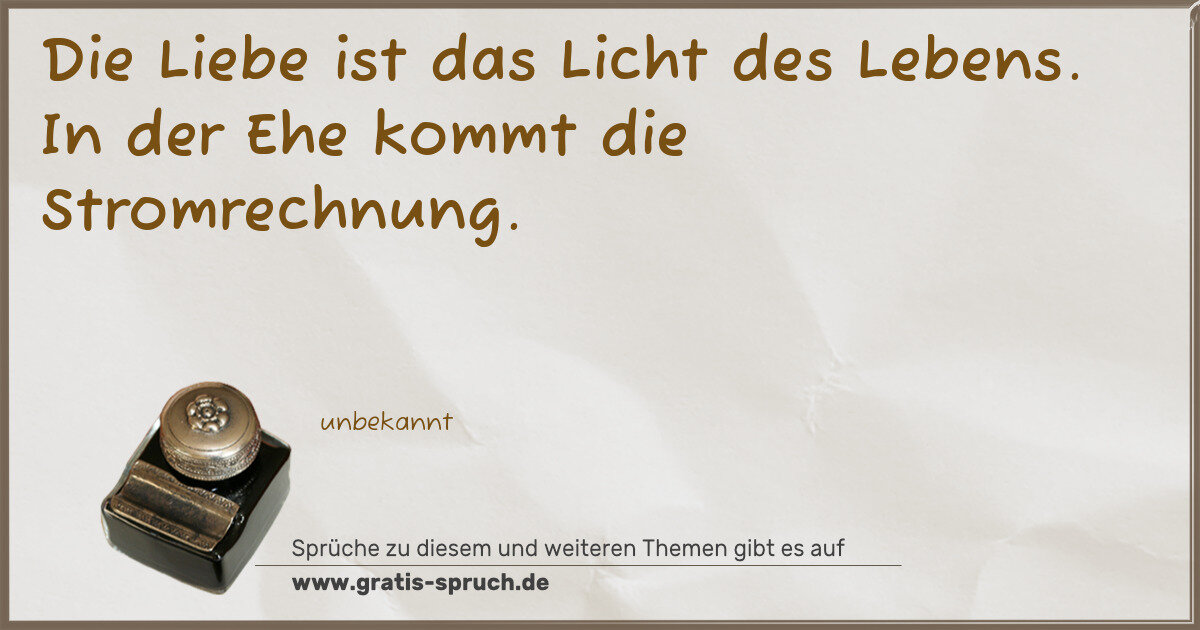 Die Liebe ist das Licht des Lebens. In der Ehe kommt die Stromrechnung.