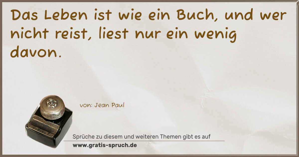 Das Leben ist wie ein Buch, und wer nicht reist, liest nur ein wenig davon.