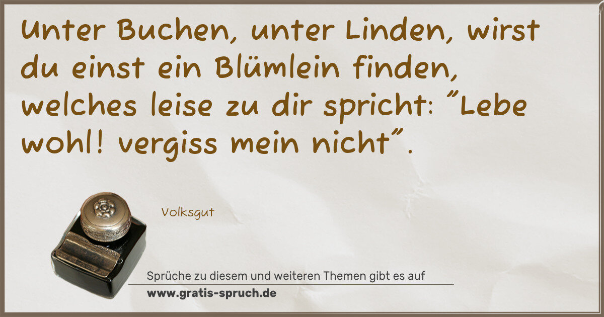Unter Buchen, unter Linden, wirst du einst ein Blümlein finden, welches leise zu dir spricht: "Lebe wohl! vergiss mein nicht".