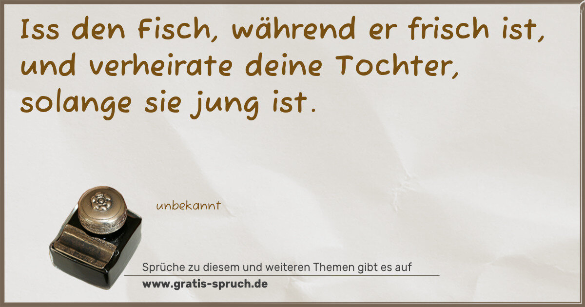 Iss den Fisch, während er frisch ist, und verheirate deine Tochter, solange sie jung ist.