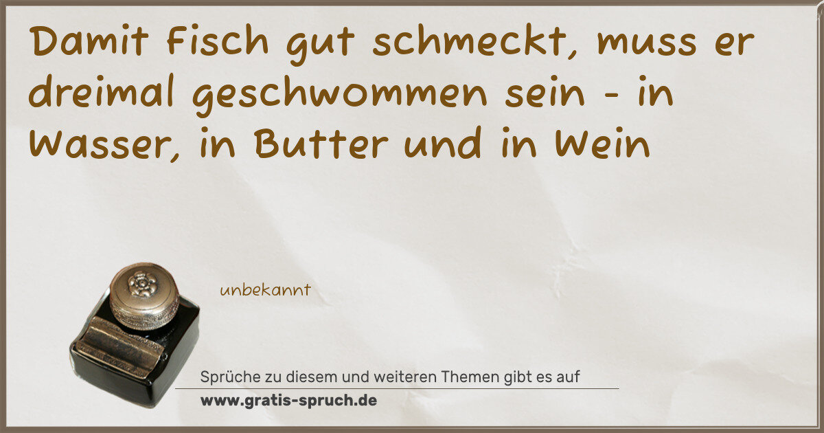 Damit Fisch gut schmeckt, muss er dreimal geschwommen sein - in Wasser, in Butter und in Wein