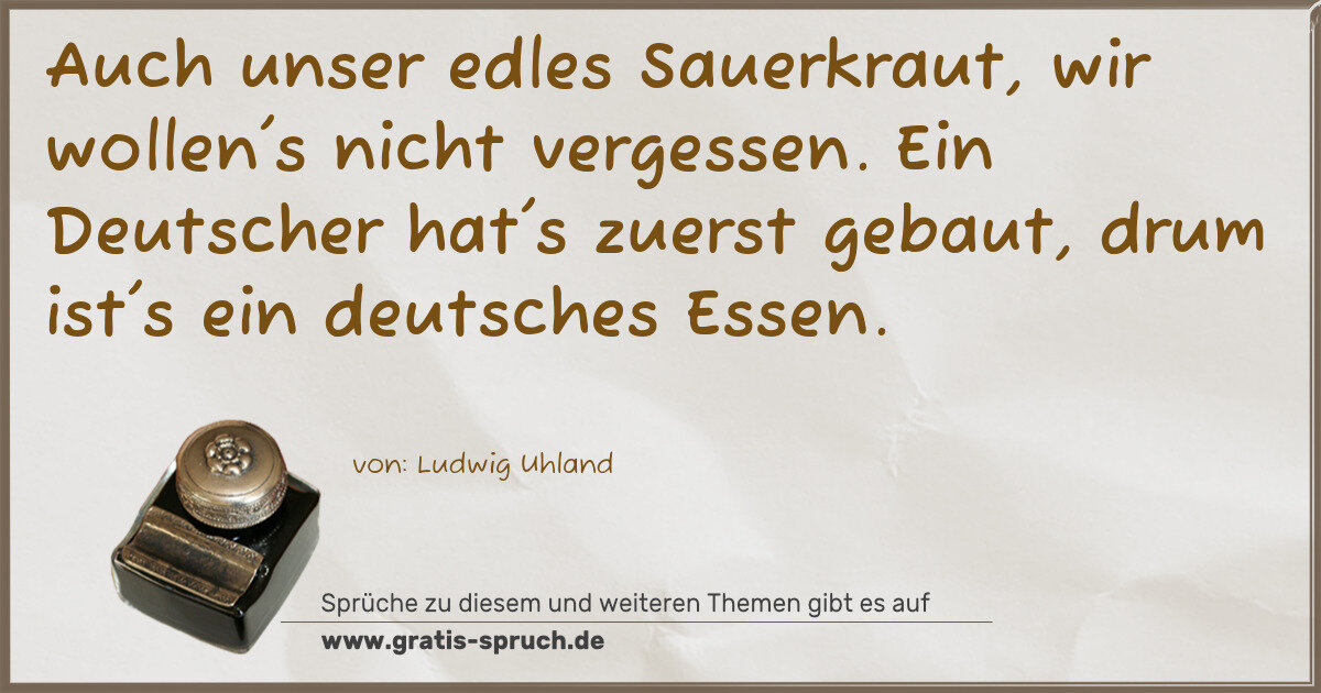Auch unser edles Sauerkraut, wir wollen's nicht vergessen. Ein Deutscher hat's zuerst gebaut, drum ist's ein deutsches Essen.