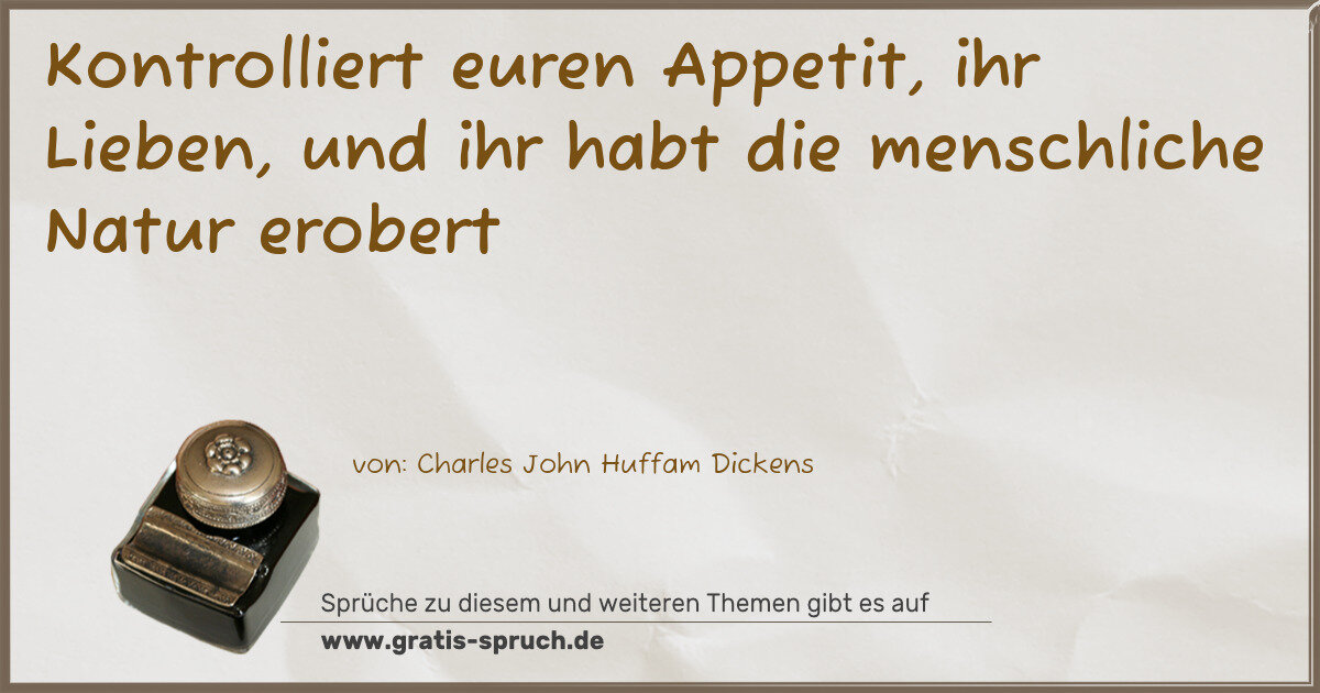 Kontrolliert euren Appetit, ihr Lieben, und ihr habt die menschliche Natur erobert