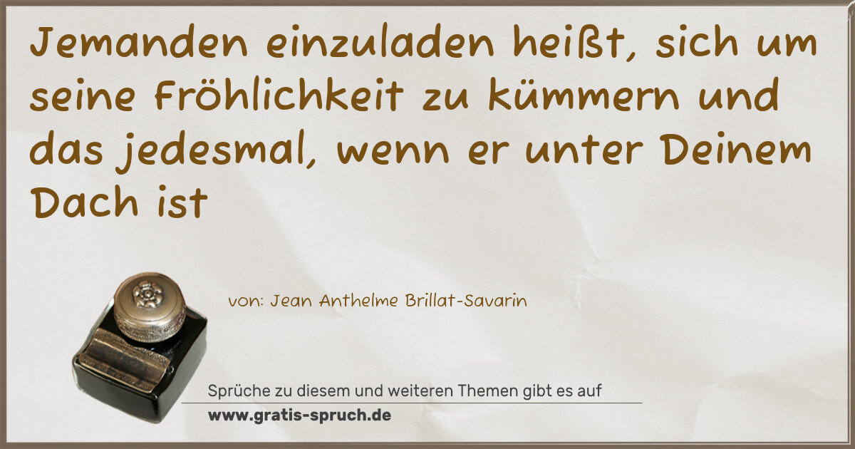 Jemanden einzuladen heißt, sich um seine Fröhlichkeit zu kümmern und das jedesmal, wenn er unter Deinem Dach ist