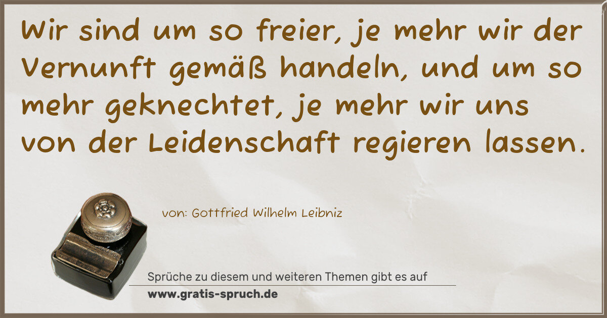 »Wir sind um so freier, je mehr wir der Vernunft gemäß handeln, und um so mehr geknechtet, je mehr wir uns von der Leidenschaft regieren lassen.