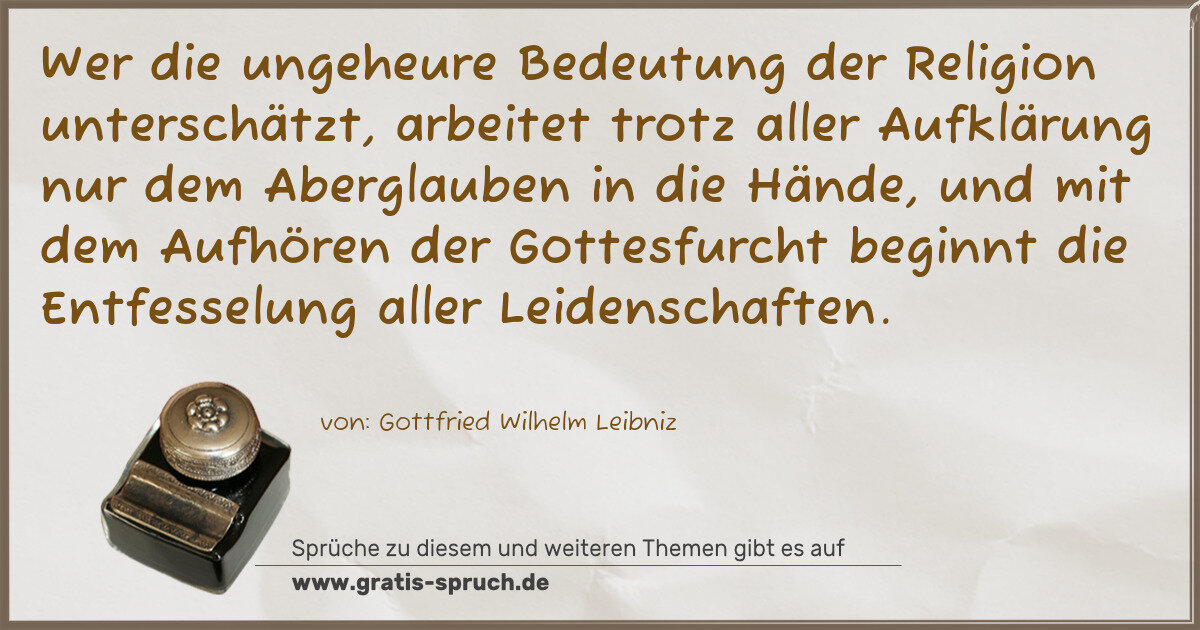 »Wer die ungeheure Bedeutung der Religion unterschätzt, arbeitet trotz aller Aufklärung nur dem Aberglauben in die Hände, und mit dem Aufhören der Gottesfurcht beginnt die Entfesselung aller Leidenschaften.