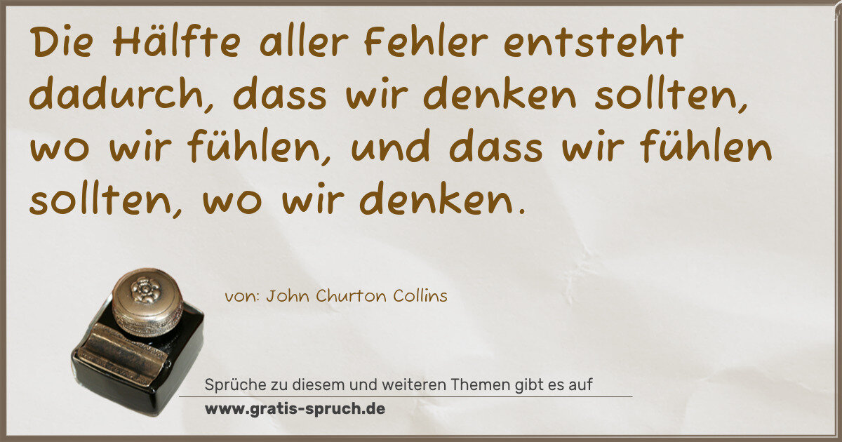 Die Hälfte aller Fehler entsteht dadurch, dass wir denken sollten, wo wir fühlen, und dass wir fühlen sollten, wo wir denken.