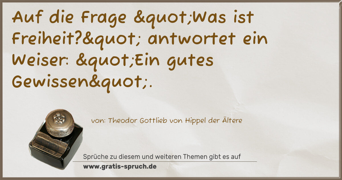 Auf die Frage "Was ist Freiheit?" antwortet ein Weiser: "Ein gutes Gewissen".