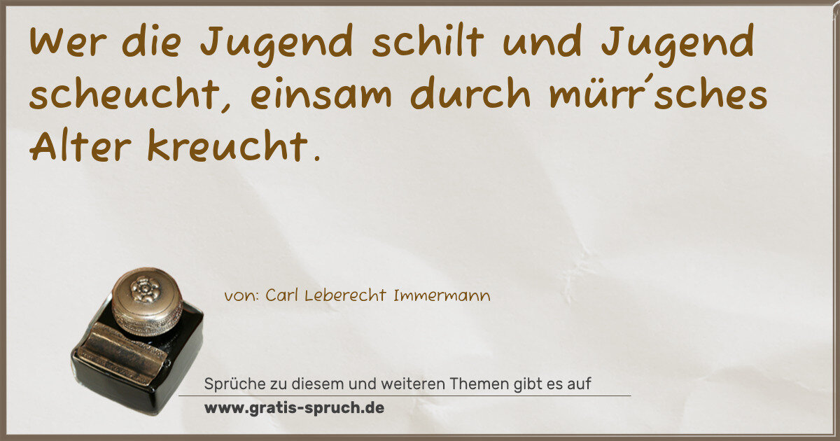 Wer die Jugend schilt und Jugend scheucht, einsam durch mürr'sches Alter kreucht.