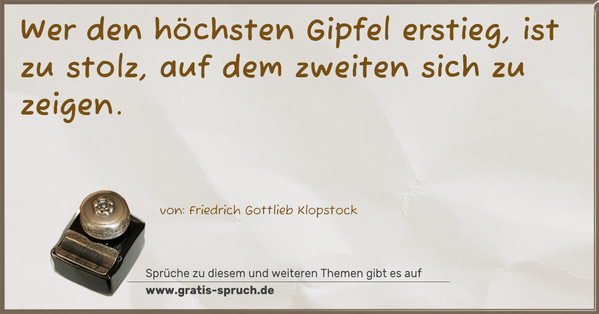 Wer den höchsten Gipfel erstieg, ist zu stolz, auf dem zweiten sich zu zeigen.