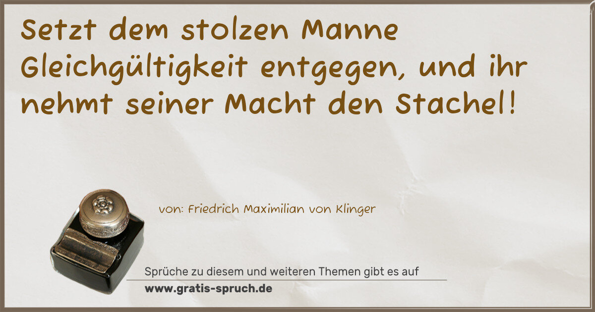 Setzt dem stolzen Manne Gleichgültigkeit entgegen, und ihr nehmt seiner Macht den Stachel!
