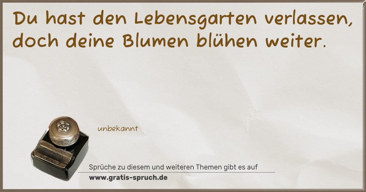Du hast den Lebensgarten verlassen, doch deine Blumen blühen weiter.