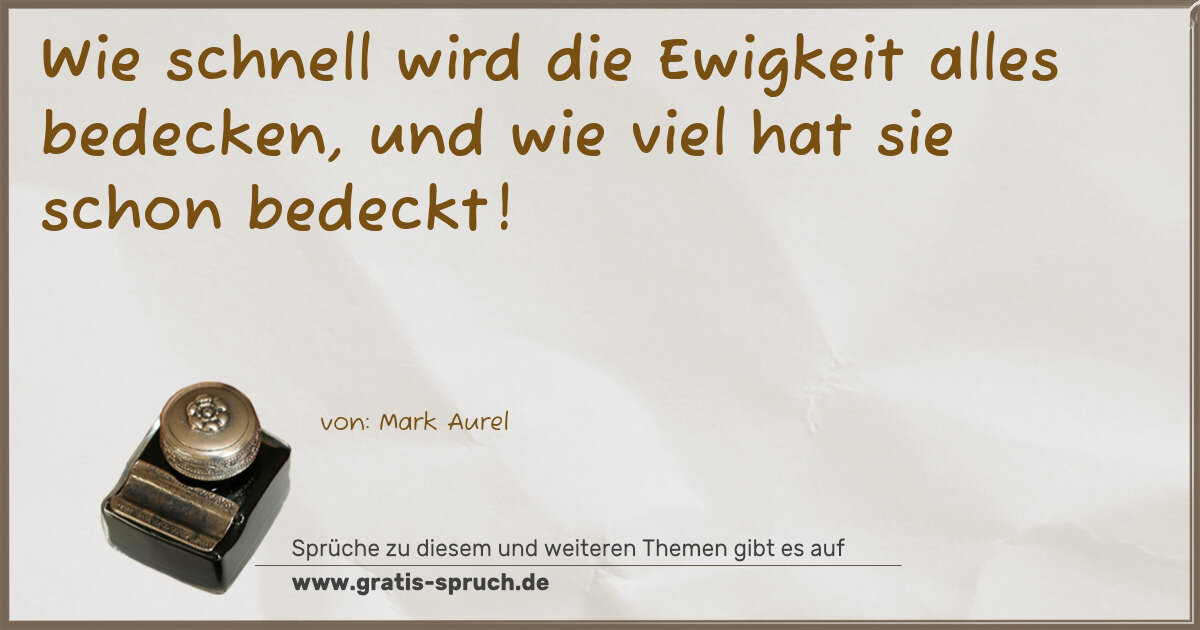 Wie schnell wird die Ewigkeit alles bedecken, und wie viel hat sie schon bedeckt!