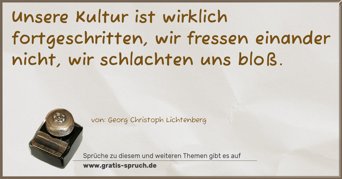 Unsere Kultur ist wirklich fortgeschritten, wir fressen einander nicht, wir schlachten uns bloß.