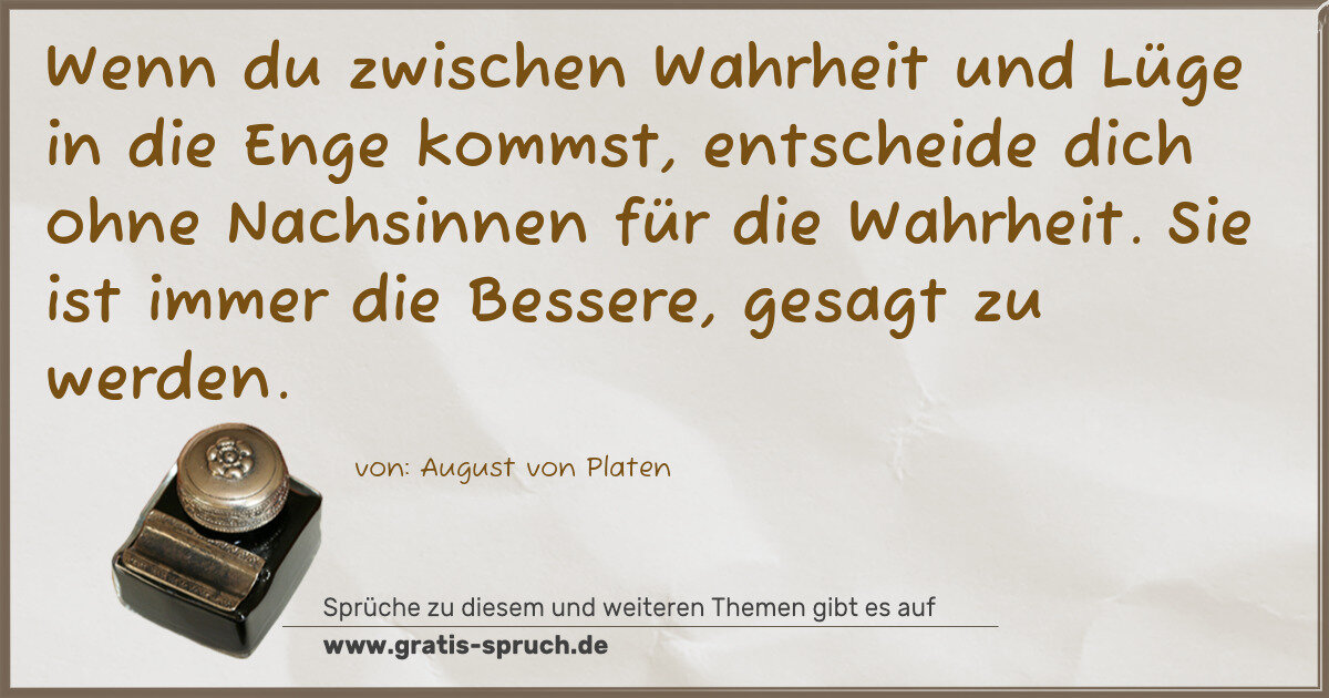 »Wenn du zwischen Wahrheit und Lüge in die Enge kommst, entscheide dich ohne Nachsinnen für die Wahrheit.