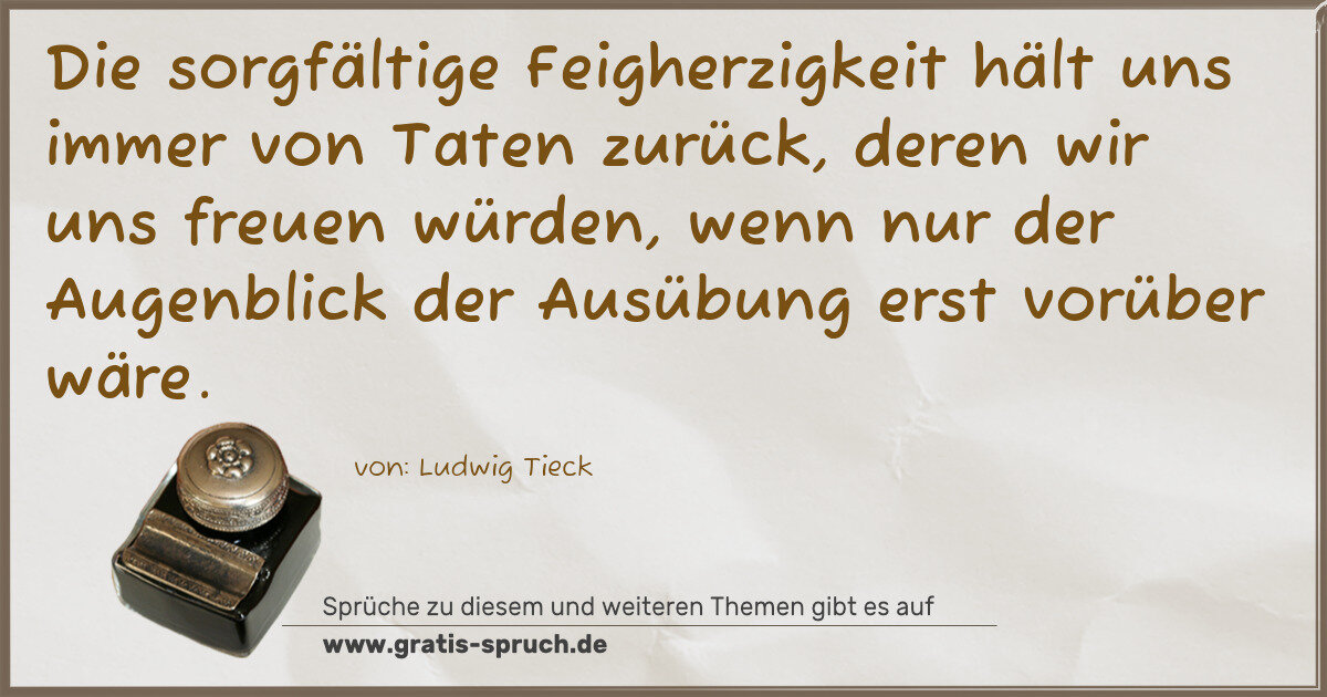 hält uns immer von Taten zurück, deren wir uns freuen würden, wenn nur der Augenblick der Ausübung erst vorüber wäre.
