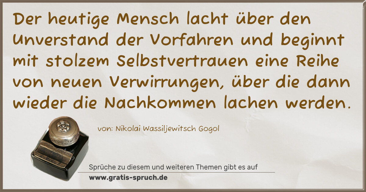 »Der heutige Mensch lacht über den Unverstand der Vorfahren und beginnt mit stolzem Selbstvertrauen eine Reihe von neuen Verwirrungen, über die dann wieder die Nachkommen lachen werden.