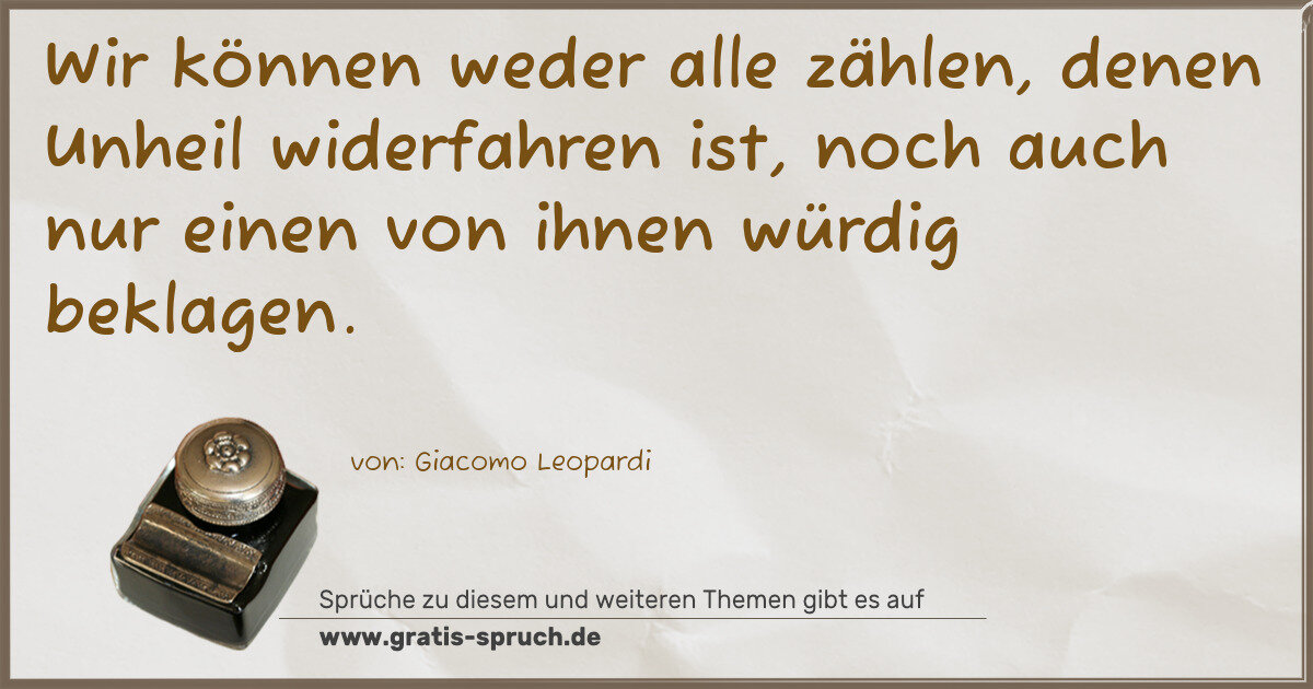 Wir können weder alle zählen, denen Unheil widerfahren ist, noch auch nur einen von ihnen würdig beklagen.