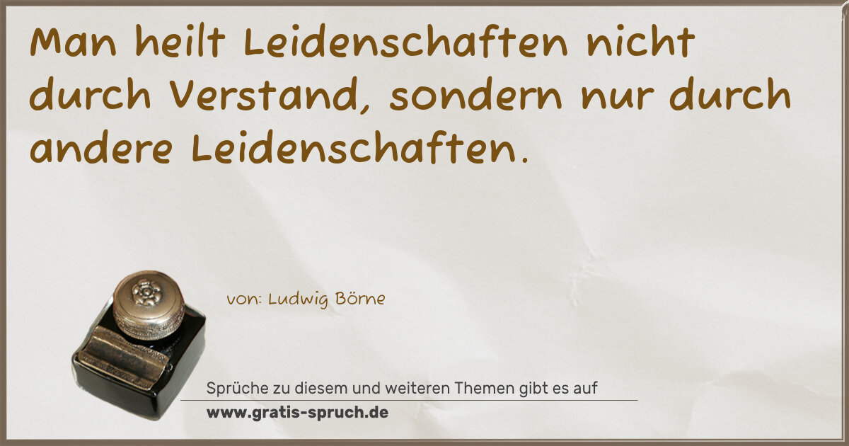 Man heilt Leidenschaften nicht durch Verstand, sondern nur durch andere Leidenschaften.