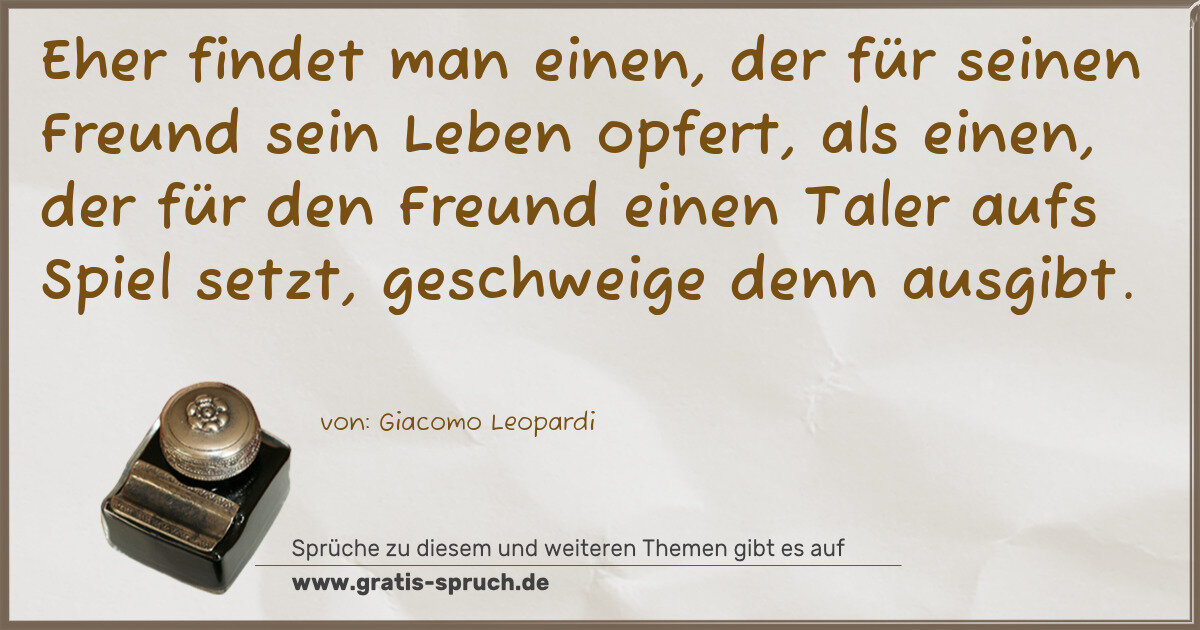 »Eher findet man einen, der für seinen Freund sein Leben opfert, als einen, der für den Freund einen Taler aufs Spiel setzt, geschweige denn ausgibt.