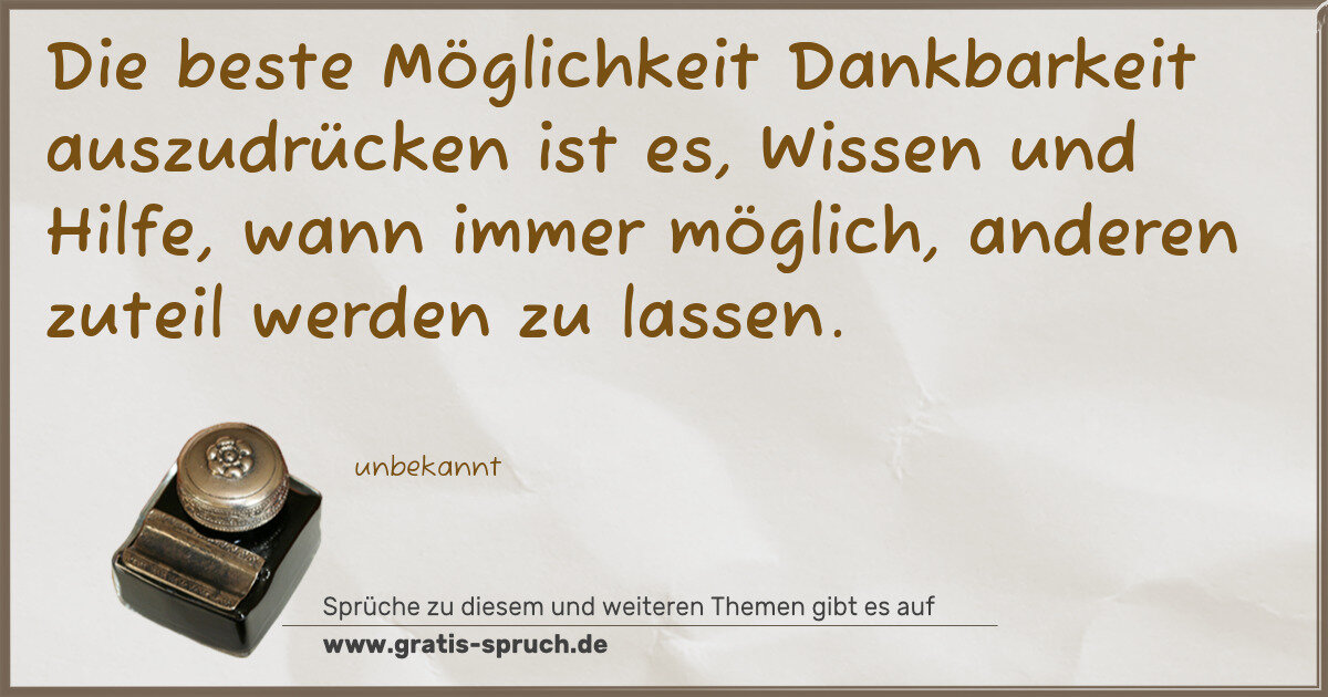 Die beste Möglichkeit Dankbarkeit auszudrücken ist es, Wissen und Hilfe, wann immer möglich, anderen zuteil werden zu lassen.
