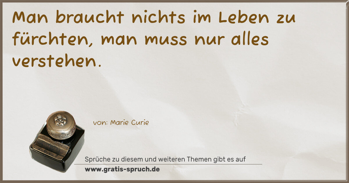 Man braucht nichts im Leben zu fürchten, man muss nur alles verstehen.