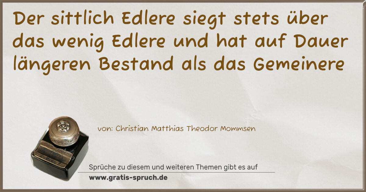 Der sittlich Edlere siegt stets über das wenig Edlere und hat auf Dauer längeren Bestand als das Gemeinere