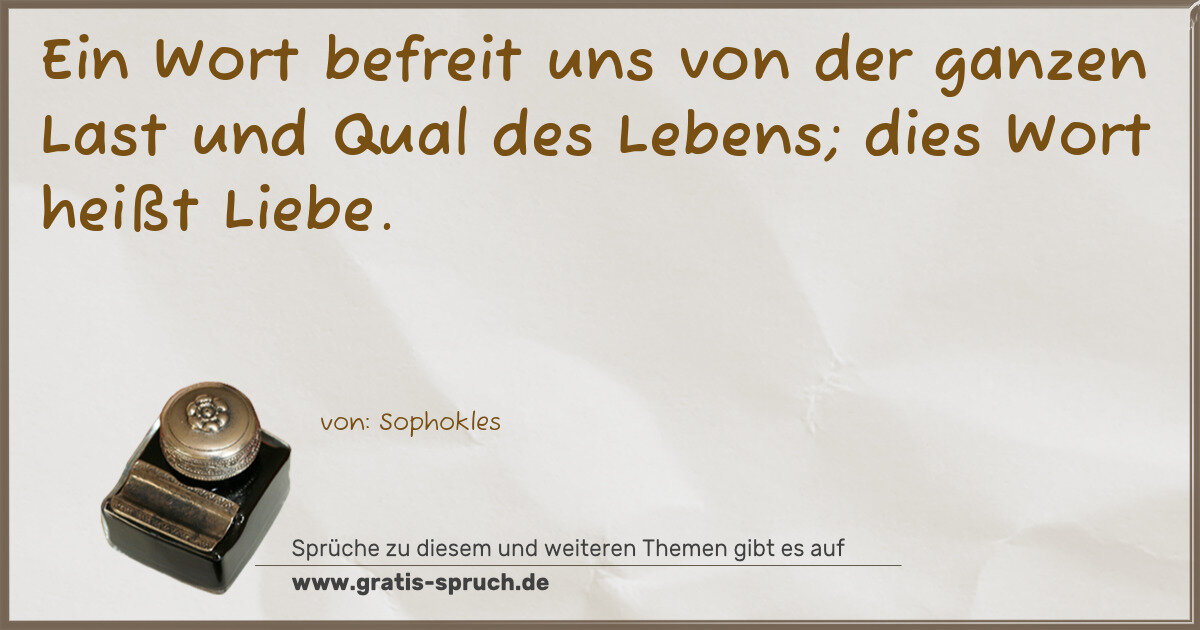 Ein Wort befreit uns von der ganzen Last und Qual des Lebens; dies Wort heißt Liebe.