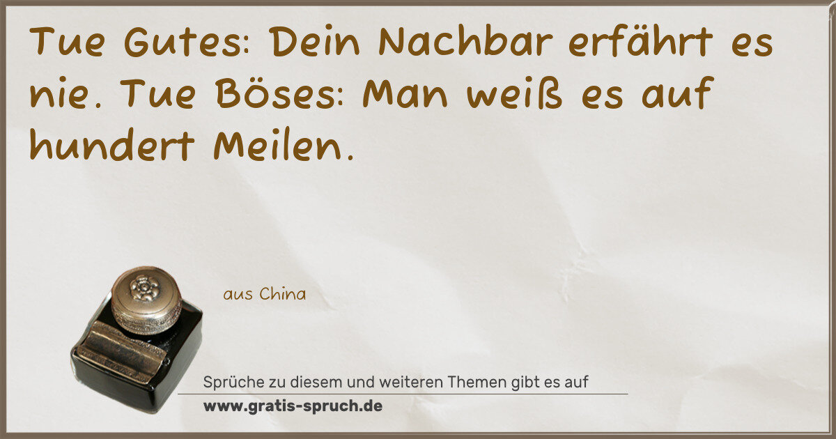 Tue Gutes: Dein Nachbar erfährt es nie. Tue Böses: Man weiß es auf hundert Meilen.