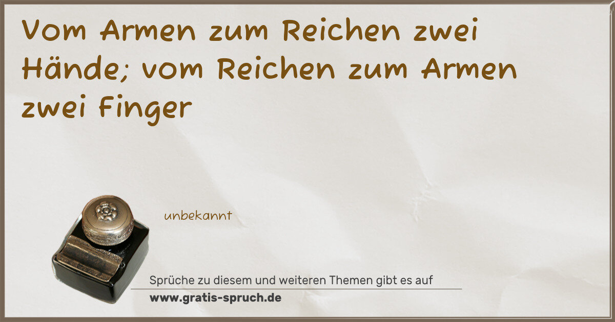 Vom Armen zum Reichen zwei Hände; vom Reichen zum Armen zwei Finger