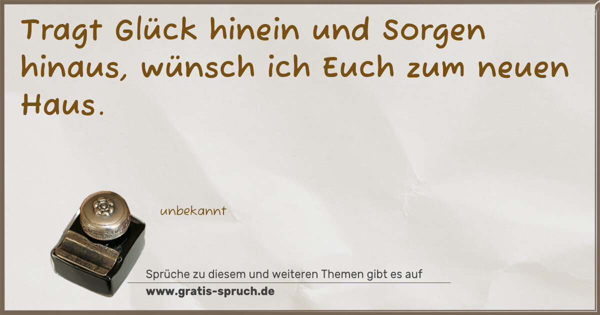 Tragt Glück hinein und Sorgen hinaus, wünsch ich Euch zum neuen Haus.