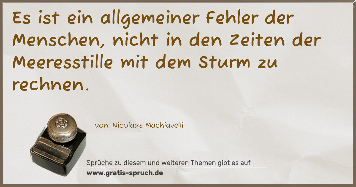 Es ist ein allgemeiner Fehler der Menschen, nicht in den Zeiten der Meeresstille mit dem Sturm zu rechnen.