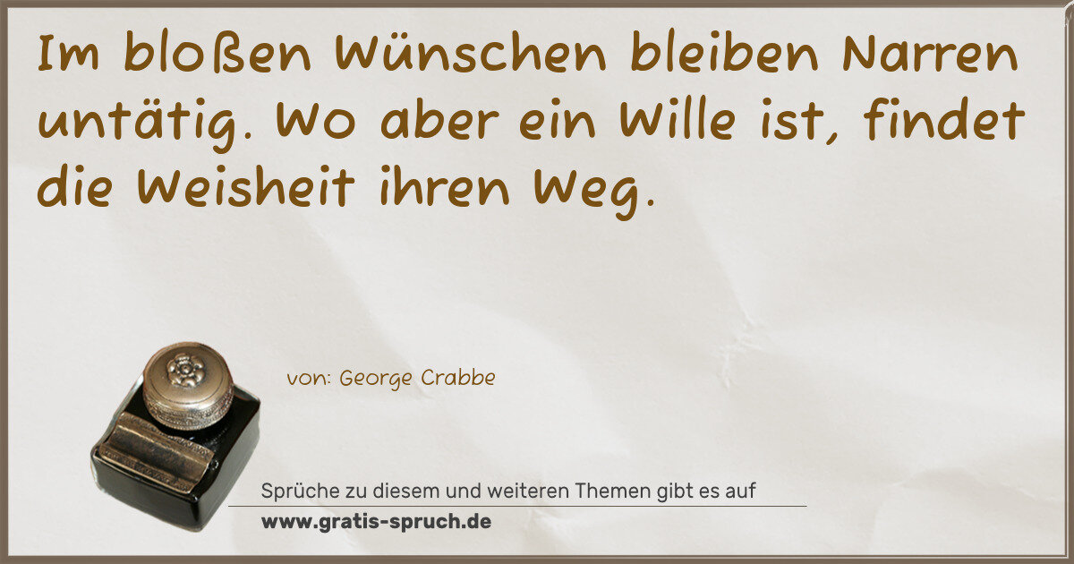 Im bloßen Wünschen bleiben Narren untätig. Wo aber ein Wille ist, findet die Weisheit ihren Weg.