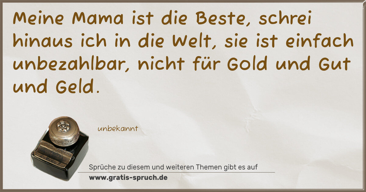 Meine Mama ist die Beste, schrei hinaus ich in die Welt, sie ist einfach unbezahlbar, nicht für Gold und Gut und Geld.