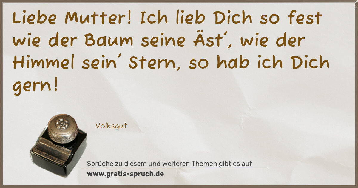 Liebe Mutter! Ich lieb Dich so fest wie der Baum seine Äst', wie der Himmel sein' Stern, so hab ich Dich gern!