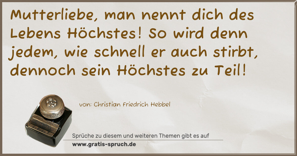 Mutterliebe, man nennt dich des Lebens Höchstes! So wird denn jedem, wie schnell er auch stirbt, dennoch sein Höchstes zu Teil!