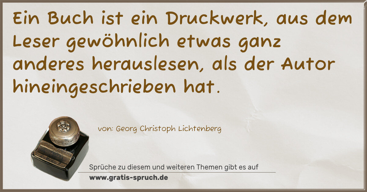 Ein Buch ist ein Druckwerk, aus dem Leser gewöhnlich etwas ganz anderes herauslesen, als der Autor hineingeschrieben hat.