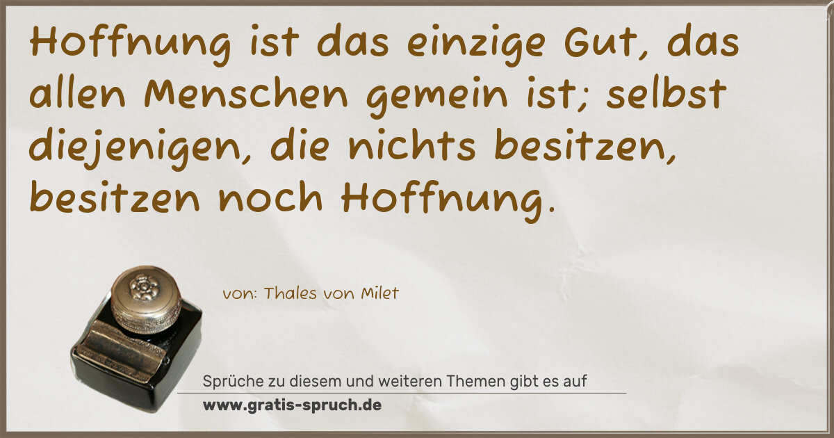 Hoffnung ist das einzige Gut, das allen Menschen gemein ist; selbst diejenigen, die nichts besitzen, besitzen noch Hoffnung.